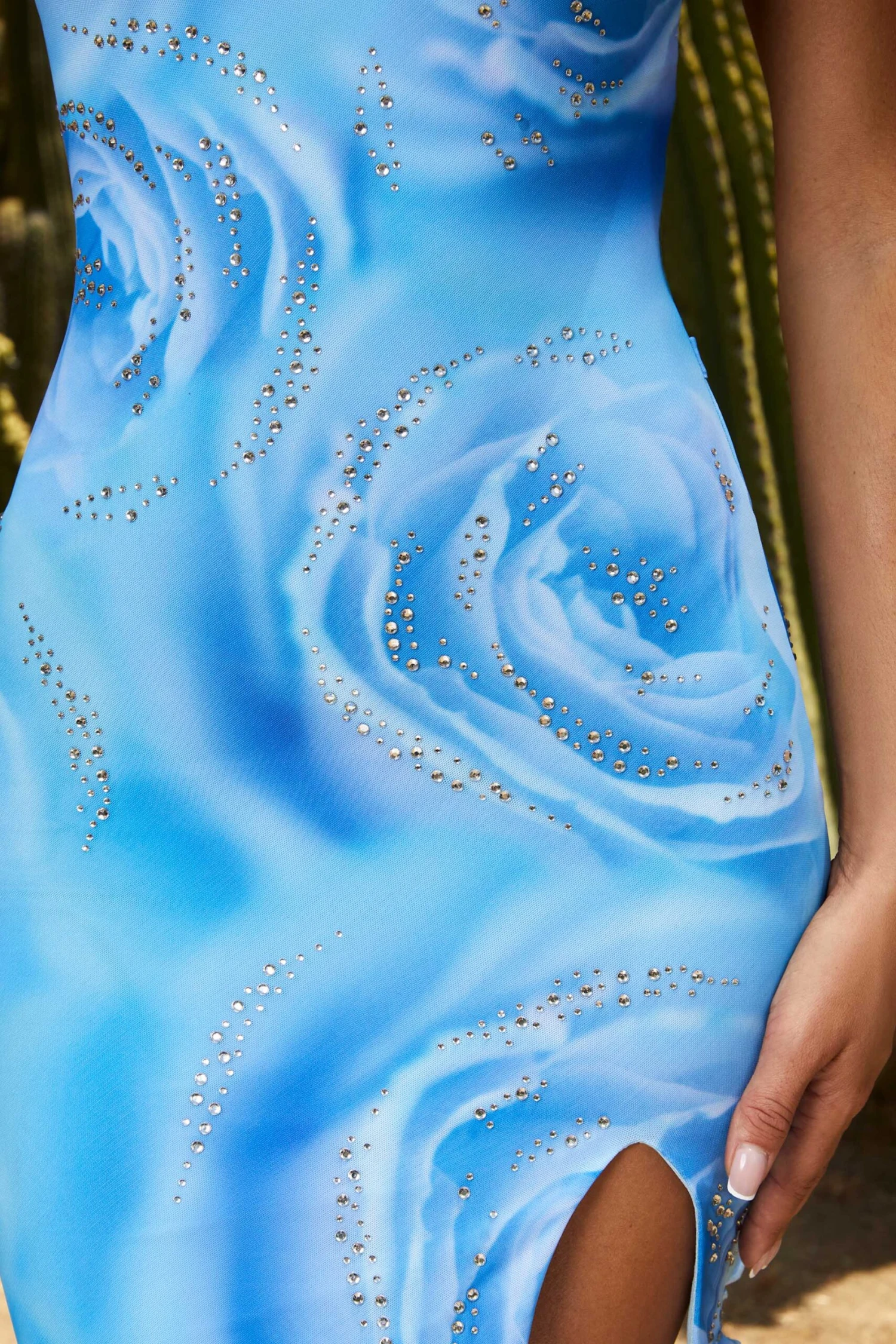 A playful mini dress designed with a low, plunging neckline, y2k spaghetti straps and a cheeky thigh split. Mehri is light and airy to wear, and the waistline is cut with an extreme curve to follow the contours of your body, so it’s the perfect addition to your vacay wardrobe.