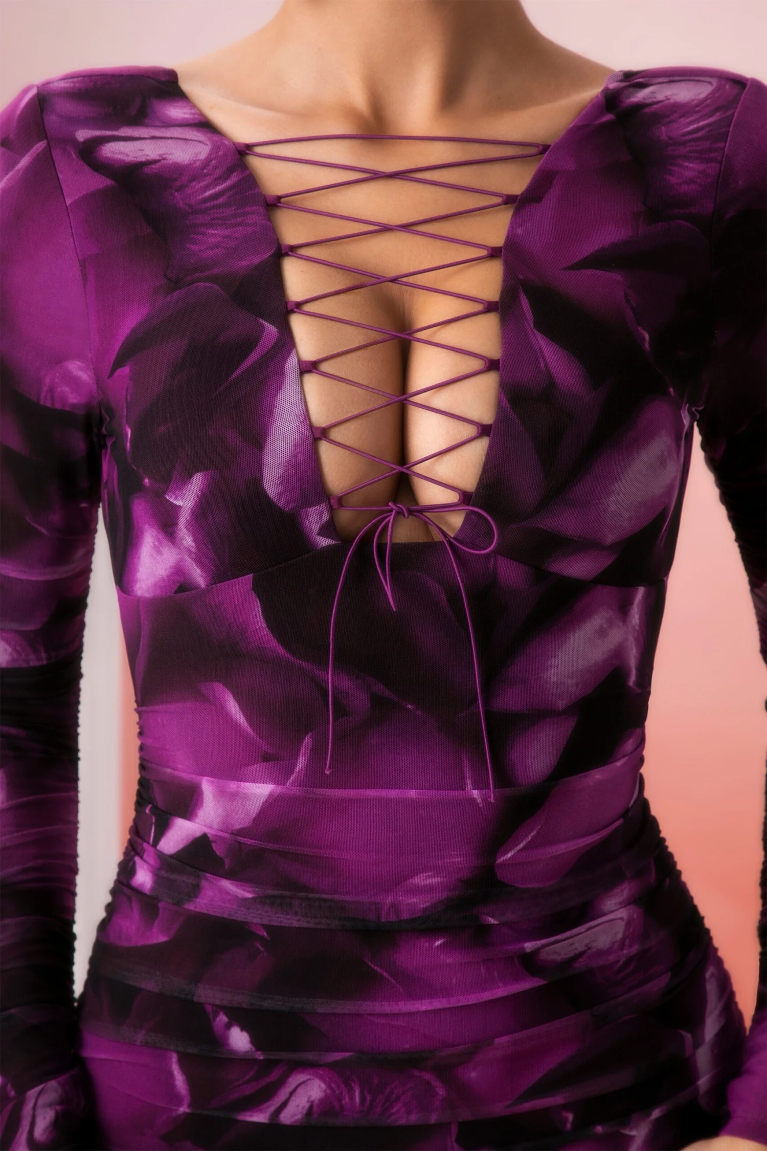 Make a statement this season in our stand out lace up mini dress. Cut from our figure enhancing stretch jersey fabric overlaid with super soft mesh, Pragma mini dress features a ruched skirt that flatters your curves and long ruched sleeves that finish just below the knuckle. Featuring a low scoop back and deep V neckline with lace up detailing, Pragma will draw attention from all angles. Designed in two stand out shades, we recommend pairing our Pragma mini dress with minimalistic heels and accessories.